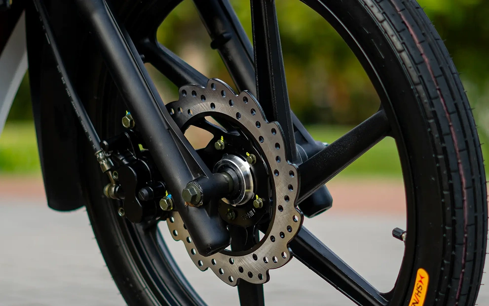 A JET 125ss conta com rodas de liga leve aro 14″ na traseira e aro 17″ na dianteira. Além disso, conta com o freio dianteiro a disco, oferecendo uma frenagem mais eficiente e rápida.