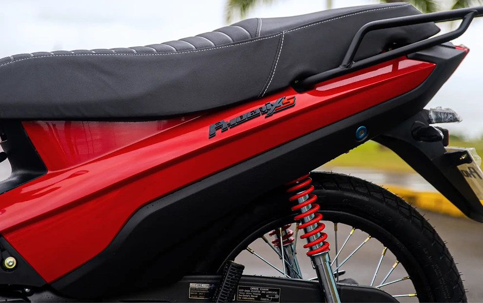 Na parte dianteira, a Phoenix S conta com garfo telescópico, melhorando a aderência dos pneus ao solo, ideal para terrenos irregulares. Já na parte traseira, a suspensão é bi-shock garantindo uma maior estabilidade. Um conjunto que une tecnologia e conforto, ideal para aventuras e trajetos desafiadores.