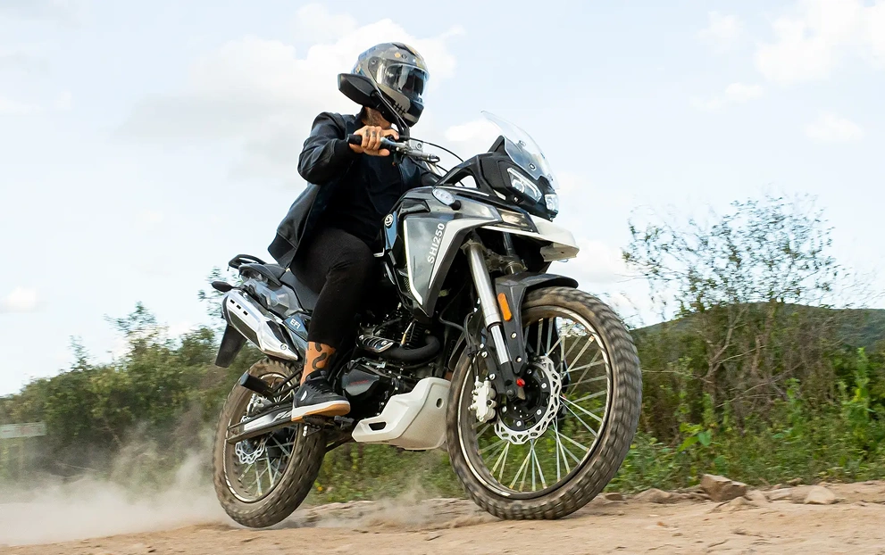 Conheça a SHI 250: A SHI 250 é a escolha ideal para quem busca aventura dentro e fora da cidade. Com motor de 250cc, ela entrega força, versatilidade e robustez para encarar qualquer terreno.